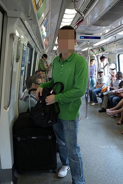 隨便吃完東西後,我們就要搭捷運去飯店check-in了. 捷運位於機場的第2和第3航廈,所以從第1航廈出關的人(我們)要先搭skytrain去第2航廈,出了航廈後就可以沿著指標找到旁邊的捷運站.
