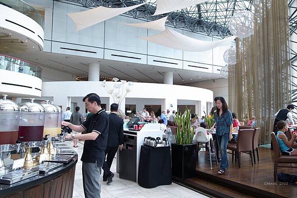 這家 Swissotel The Stamford Hotel 其實有個很大的特色,除了坐落於行政區交通便利以外,飯店高達71層樓,並且擁有非常棒的餐廳Equinox Complex,在酒店的1樓及68~72樓分別有五間餐廳及bar,其中最有特色的就是Equinox Restaurant及New Asia Bar. 本來我們也打算某天晚上有空的話上去喝點小酒,可是實在是每天都太晚回來也累扁了. 據旅遊書上說,71樓的New Asia Bar有往下傾斜20度的地板設計,點杯酒倚窗而坐,就能把新加坡的燈海踩在腳下,若是某天晚上沒事的話,去享受點微醺的夜景,也是不賴啊~
