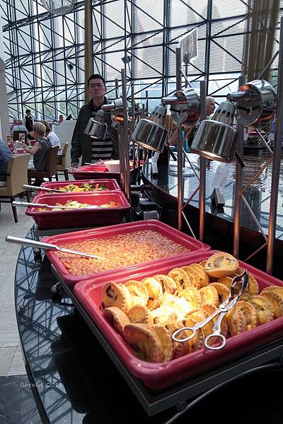 雖然是buffet,可是一坐下就會有人過來問要喝什麼飲料,然後就會有人拿熱茶或熱咖啡過來. 不過我們都是點latte,能在這種buffet的早餐喝到大杯拿鐵,又是另一種大器啊!