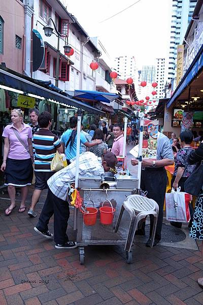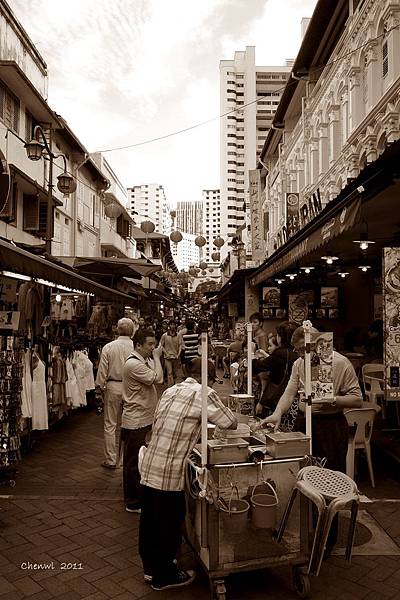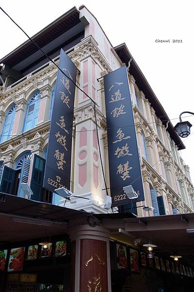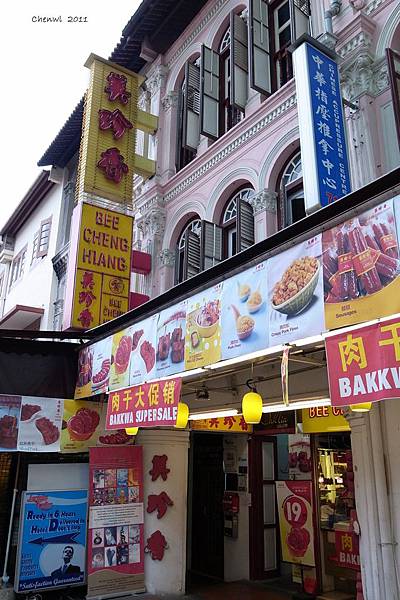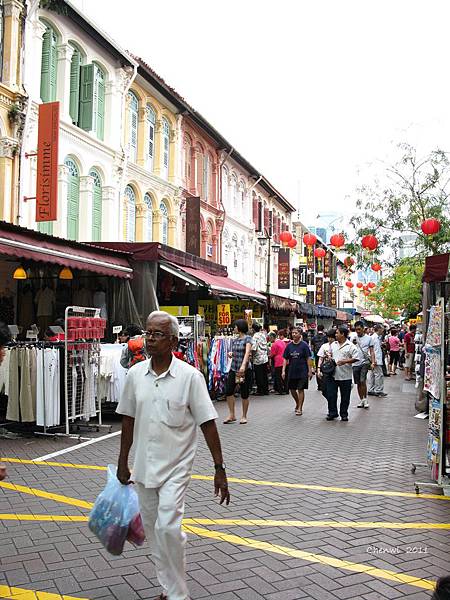 這條熱鬧的寶塔街,兩旁都是shophouse(傳統店屋). 是當年萊佛士規畫都市藍圖時,為了方便管理而設計出的房型,門面狹窄,內部深長. shophouse的外觀融合了歐洲,中國及馬來特色,古典梁柱及法式百葉窗是採用歐洲風貌,大門前加一道半腰門是馬來典型,至於各種裝飾彩繪圖案則受中國影響,例如葫蘆蓮花圖樣,所以這裡的店屋又有中國巴洛克的美名喔!