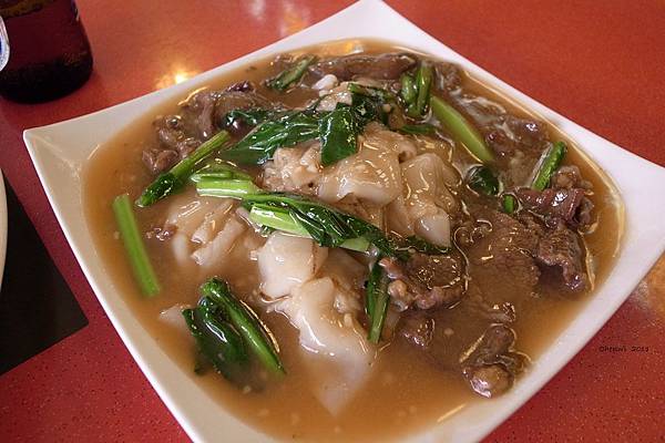 原本我們點菜時,服務的大姊特別向我們確認了是乾的還是溼的河粉,我們回答是乾的,結果送上來這盤,我們也沒懷疑,正想下箸前,大姊突然衝過來說,對不起炒錯了,妳們要的是乾的吼,馬上請廚房幫妳們重新炒一份,哈~還好我吃之前還花了點時間照相,要不然就吃下去了.....