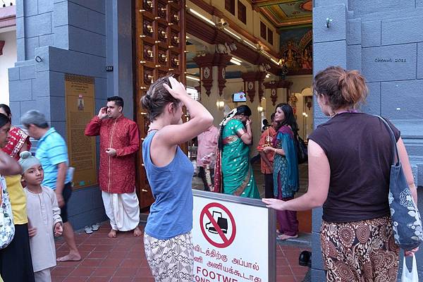 不過這次經過興都廟的確在我心裡造成了某種震撼,那是一種不論是聲音,味道,衣著等等都不同的宗教習俗,不似日本的佛寺還跟我們有點相像,興都廟給我的感覺可能是畏懼多於好奇的,也因為如此才沒有入內參觀,不過隔天我們去小印度時,就克服了這層畏懼,參觀了另一間興都廟了!