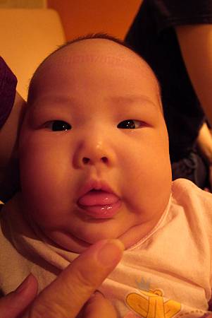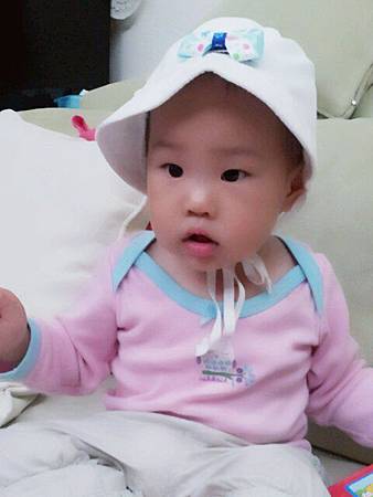 哇哇哇~~這小美女是誰呀?怎麼這麼白泡泡幼咪咪的呢!! 而且頭上還有某位不認識的阿姨送的漂亮髮夾耶,雖然頭髮太少夾不上去,可式夾在帽子上也好Q耶~~阿哩阿斗!!