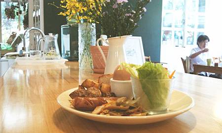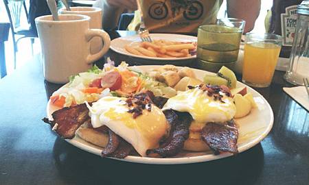 今天是中秋節,為了應景,點了圓圓的班尼迪克蛋,而且還有兩顆,吃好補喔!! 這家早午餐一份大概一兩百塊附兩杯飲料,吃到很撐,大大滿足!!